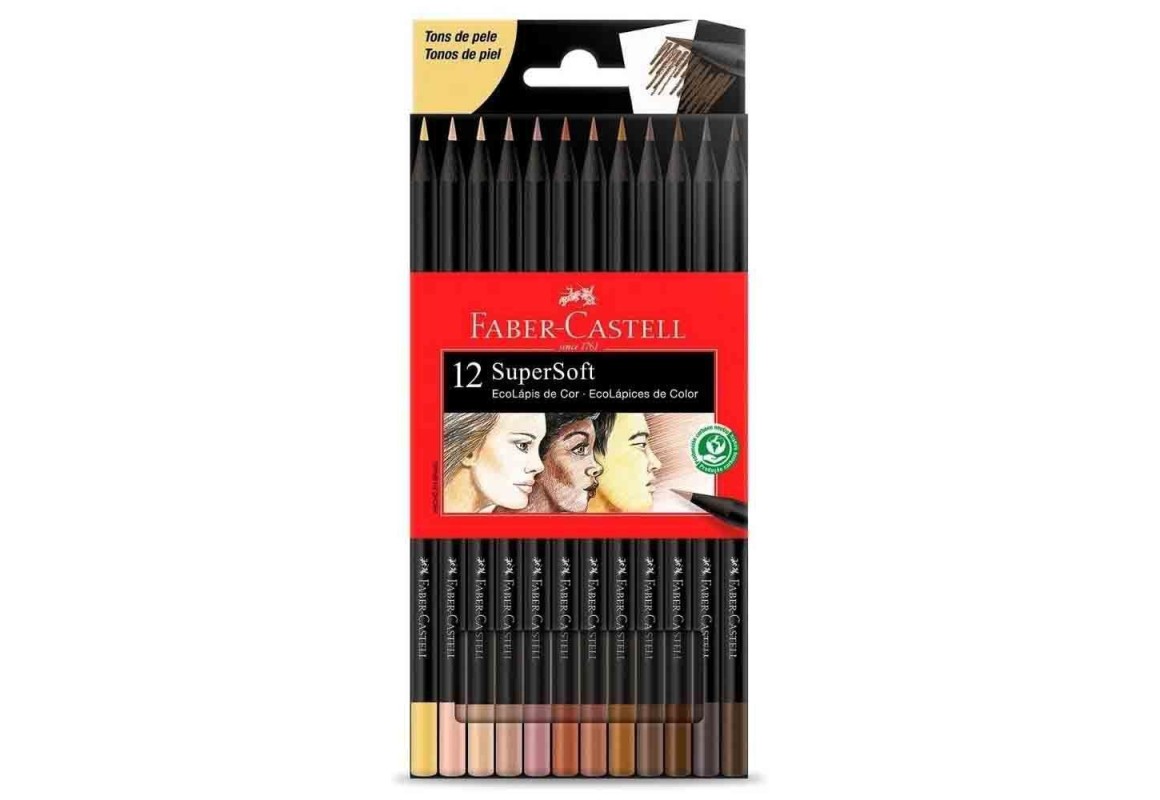 LAPIS DE COR ECOLAPIS SUPERSOFT FABER CASTELL 12 CORES TONS DE PELE