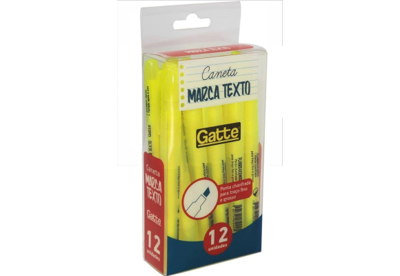 MARCA TEXTO GATTE AMARELO CX C/ 12 PCS