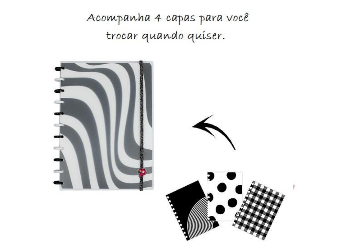 Cada caderno acompanha 4 capas em papel couchê 250g que podem ser trocadas a qualquer momento!