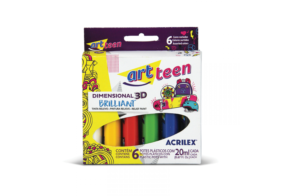 TINTA DIMENSIONAL 3D BRILLIANT ACRILEX CX 6 UNI