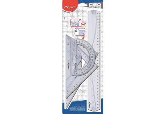 KIT GEOMETRIC MAPED 4 PCS (1 REGUA 30CM / 2 ESQUADROS 60 E 45° / 1 TRANSFERIDOR 180°)