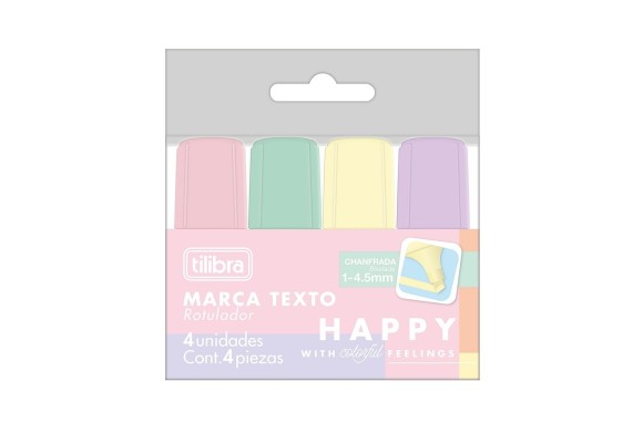 MARCA TEXTO TILIBRA MINI HAPPY BLISTER COM 4