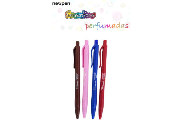 ESFEROGRAFICA NEWPEN CLIC PERFUMADA - RS/MA/AZ/VM - 0.7 MM - PT/4
