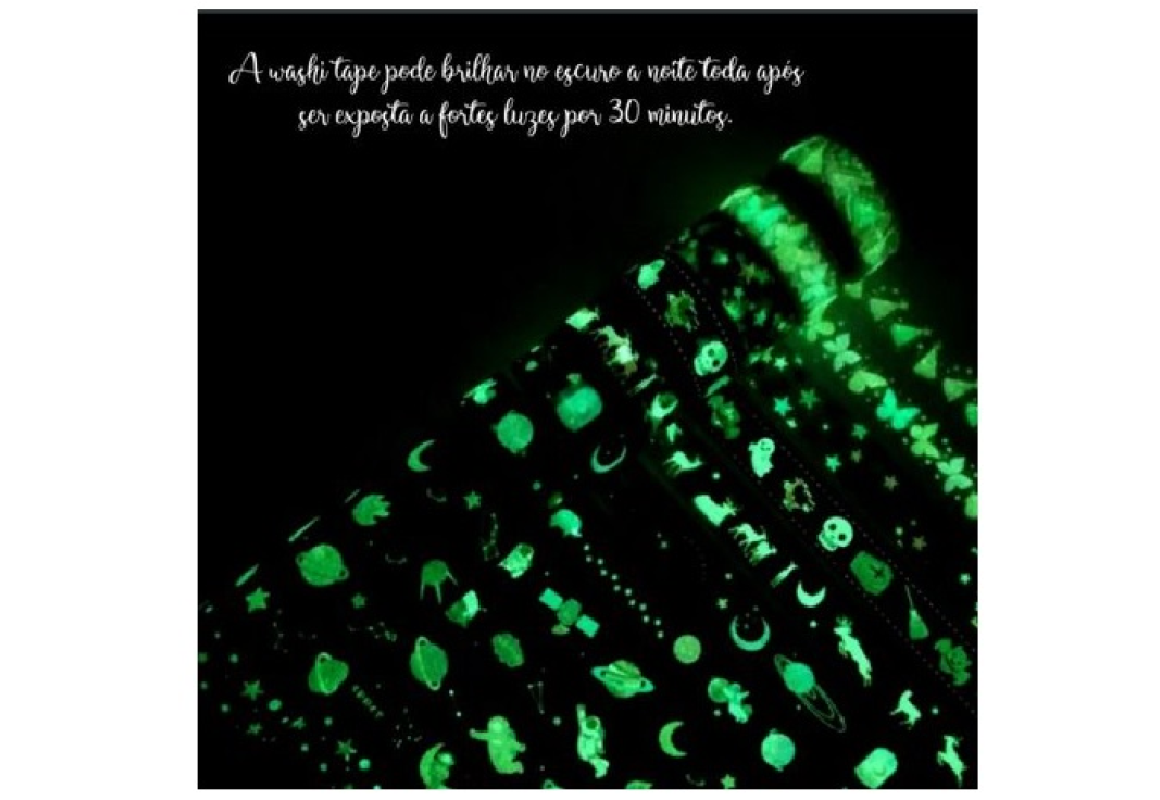 FITA ADESIVA WASHI TAPE GLOW 15MMX3M BRILHA NO ESCURO 1 UNIDADE