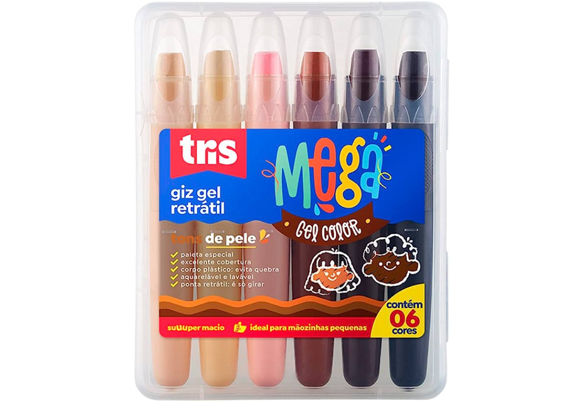 GIZ DE CERA GEL RETRATIL TRIS MEGA TONS DE PELE 6 CORES