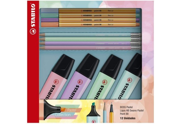 KIT STABILO: BOSS PASTEL+88 PASTEL +SWANO C/12 PEÇAS