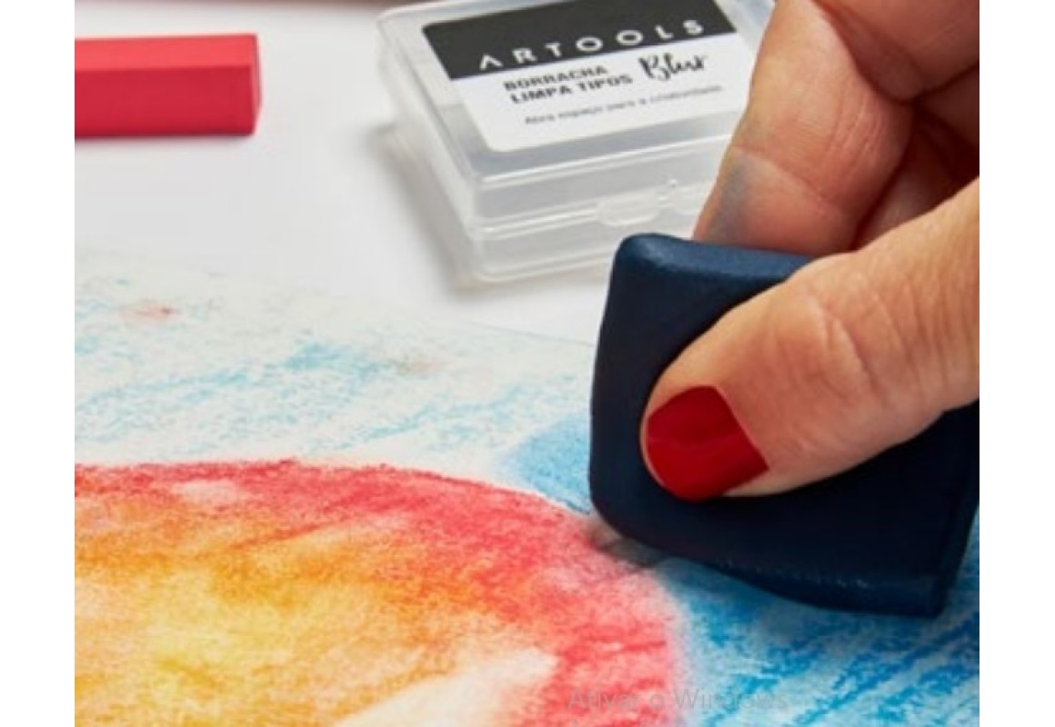 A borracha limpa tipos Artools Blur é maleável, absorve facilmente excessos de carvão, grafite e pastel seco. Não deixa residuos facilitando o processo. Vem em um estojo rígido.