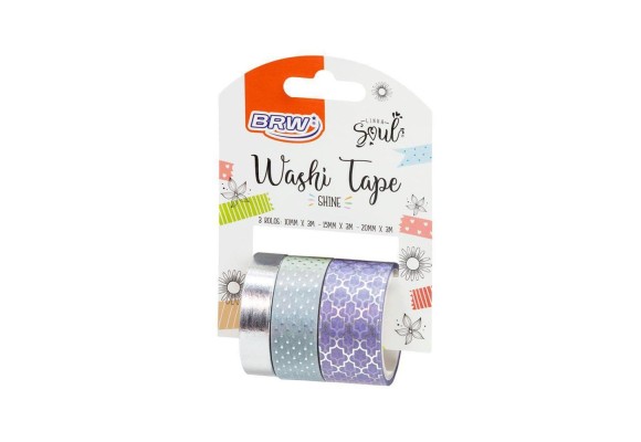 FITA ADESIVA WASHI TAPE BRW SHINE LILÁS - 10/15/20X3M - BLISTER C/ 3UN