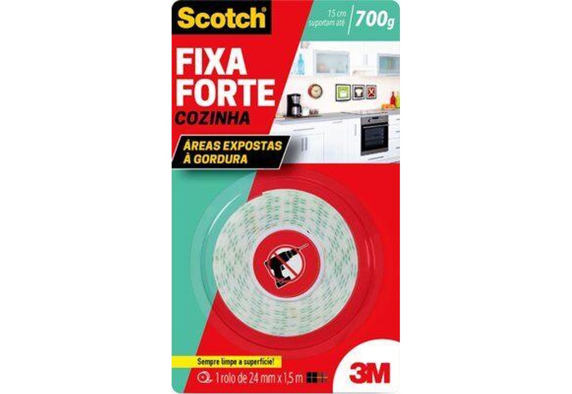 FITA DUPLA FACE SCOTCH 3M FIXA FORTE COZINHA 24MM X 1.5M